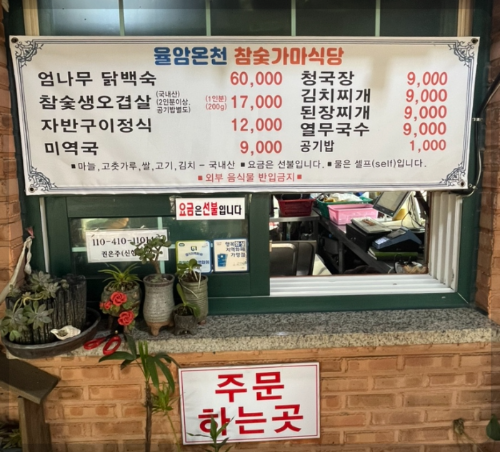 온천을 즐긴 후 방문하기 좋은 맛집들도 많지만 그 중에서 대표적으로 율암온천 안에서 삼겹살을 맛볼 수 있는 율암온천 참숯가마식당이 있습니다. 삼겹살 외에도 닭백숙, 자반구이정식, 김치찌개, 열무국수 등 다양한 메뉴를 즐길 수 있습니다.